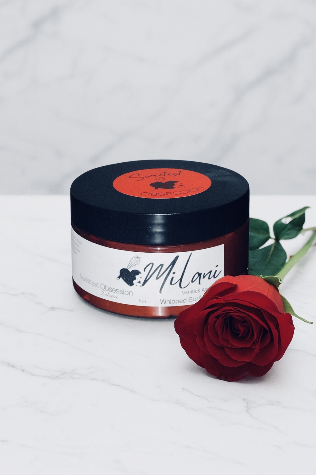 Made with 100% natural oils and butters Hydration that lasts all day Absorbs quickly, leaving skin velvety soft Inspired by Sweetest Obsession 8 oz of pure goodness